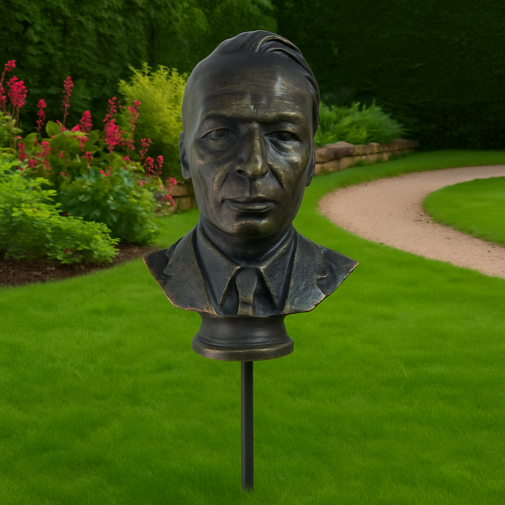 Hol Dir das Flair großer Swing-Nächte direkt ins Beet! Unsere Büsten-Figur „Swing Legend“ entsteht in der Braunschweiger Dekoorial-Werkstatt komplett in Handarbeit: Aus widerstandsfähigem Acryl modelliert, mit einer edlen Bronze-Patina versehen und abschließend UV- sowie wetterfest versiegelt. Mit ihren kompakten 13 × 10 × 8,5 cm thront die Skulptur auf einem schlanken Metallstab, der sich mühelos in Pflanzkübel, Rasen oder Staudenbeet stecken lässt. Feine Gesichtszüge, klassischer Krawattenknoten und dezente Alterslinien verleihen der Figur zeitlose Eleganz und Charakter. Dank der Klarlack-Schutzschicht bleiben Schimmer, Farbe und Details auch bei Sonne, Regen oder Frost dauerhaft erhalten. Jedes Exemplar wird einzeln nummeriert – damit hältst Du ein echtes Unikat „made in Braunschweig“ in den Händen. Ob als stilvoller Blickfang im Rosenbogen, originelles Geschenk für Musik- und Kunstliebhaber*innen oder als nostalgisches Statement auf Balkon und Terrasse: „Swing Legend“ sorgt garantiert für Gesprächsstoff und einen Hauch Rat-Pack-Magie in Deinem grünen Reich!